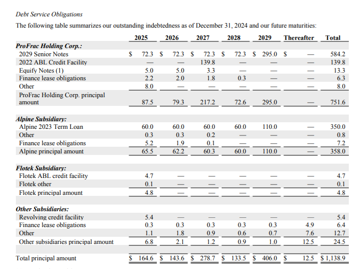 Leverage: Most debt matures in 2029, though ~$350M is tied to Alpine Silica. If Alpine IPOs under better conditions, that exposure may shrink. Debt still weighs on FCF.